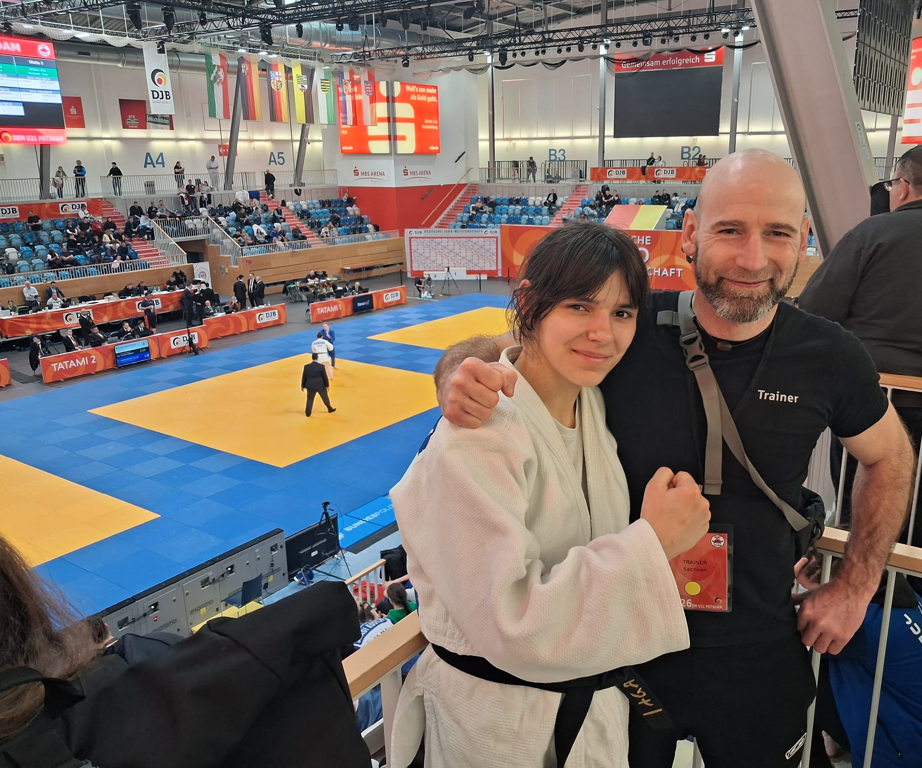 Vor dem dritten Kampf besprachen Anna und der mitgereiste Trainer Robert Becke noch einmal die Taktik gegen die nächste Kontrahentin – die andere Drittplatzierte der Westdeutschen Meisterschaften. Die Taktik ging auf, denn nach einer De-Ashi-Barai-Finte wich die Gegnerin wie geplant aus und Anna konnte ihren Koshi-Guruma einsetzen. Ippon nach einer Minute!