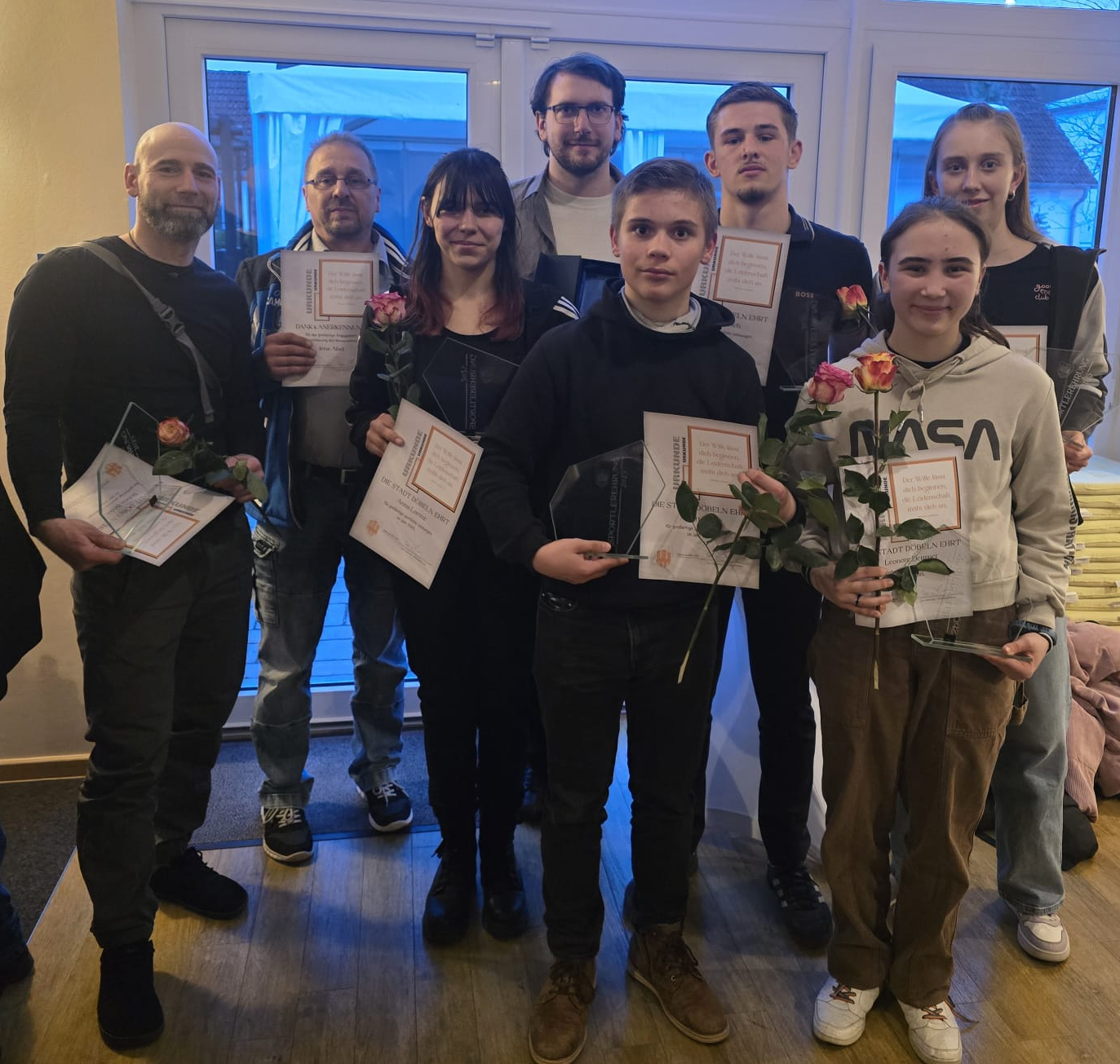 Bei der Sportlerehrung 2026 in Döbeln wurden zahlreiche Sportlerinnen und Sportler für ihre hervorragenden Leistungen ausgezeichnet. Oberbürgermeister Sven Liebhauser nahm die Ehrung in feierlichem Rahmen vor und würdigte dabei insbesondere das Engagement sowie die Erfolge der lokalen Athletinnen und Athleten. Auch die Judoabteilung des Döbelner SC war bei der Veranstaltung vertreten: Albert Hanke, Leonore Dettmer, David Kutsch, Robert Becke, Lucy Joelle Wetzig und Anna Lorenz wurden für ihre sportlichen Leistungen geehrt. Für hervorragende Vereinsarbeit wurde auch der Trainer Jens Abel sowie der Kampfrichter Felix Bahrmann ausgezeichnet. Die Veranstaltung bot einen würdigen Rahmen, um die Erfolge des vergangenen Jahres zu feiern und zugleich die Bedeutung des Sports für die Stadt Döbeln hervorzuheben.