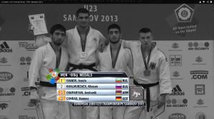 Nach dem Auftaktsieg (110:000) gegen Tomas MORALES MARTINATTO (ESP) mit De-ashi-barai und anschließender Würge verlor Hannes Conrad im Viertelfinale (000:100) gegen Melvin SCHOL aus den Niederlanden. Den anschließenden Kampf in der Hoffnungsrunde gegen Guillaume RIOU (FRA) gewann er mit Waza-ari (010:000) für Seoi-Otoshi und stand somit im Kampf um Bronze. Sein Gegner dort war Daniel GONZALEZ CAVA aus Spanien, Nr. 260 der Weltrangliste. Gleich zu Beginn ging Hannes, Nr. 49 der Weltrangliste, mit Waza-Ari für eine Opfertechnik in Führung, den er mit Yuko für Okuri-ashi-barai ausbauen konnte. Kurz vor Ablauf der Kampfzeit beendete er schließlich mit einem sehenswerten Würgegriff den Kampf (Endergebnis 111:000) und holte sich damit nach 2010 nun schon die zweite Bronzemdedaille bei einer Europameisterschaft.