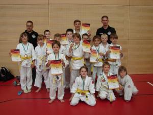-27kg U10, Nico Hilbert, -31 kg U10, Charlotte Goepel und Melina Riedel beide -30,2kg U10 sowie Sarah Lorenz, -44kg U12 und Maja Herrmann, -27 kg U10. Bei Maja ist dieser dritte Platz als kleiner erster Platz zu werten, musste sie sich doch in ihrer Gewichtsklasse nur mit Jungs auseinander setzen und behauptete sich hier in ihrem zweiten Wettkampf überhaupt hervorragend.