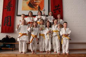Auf Einladung des Sächsischen Staatsministeriums für Kultus fuhren am Mittwochmorgen 2 Mannschaften der Grundschule Ostrau mit insgesamt 11 Judoka in die Sportstadt Riesa, wo in den Wettkampfklassen IV (5./6. Klasse Oberschulen und Gymnasien) und WK V (1.-4. Klasse Grundschulen) um die Medaillen und Siegerpokale gekämpft wurde. Neben den judospezifischen Aufgaben (Judoturnier) wurden auch allgemeine konditionelle Fähigkeiten wie Kraft, Ausdauer und Schnelligkeit sowie koordinative Fähigkeiten in den 3 Disziplinen Schlussweitsprung, Klimmzug und Sternlauf getestet und bewertet. Die jeweils 4 besten Einzelergebnisse je Mannschaft und Disziplin gingen dann letztlich in die Endabrechnung ein. Die beste Teamleistung des Tages erreichte die 1. Mannschaft der Grundschule Ostrau und sicherte sich damit verdient den Siegerpokal - hierzu herzlichen Glückwunsch.