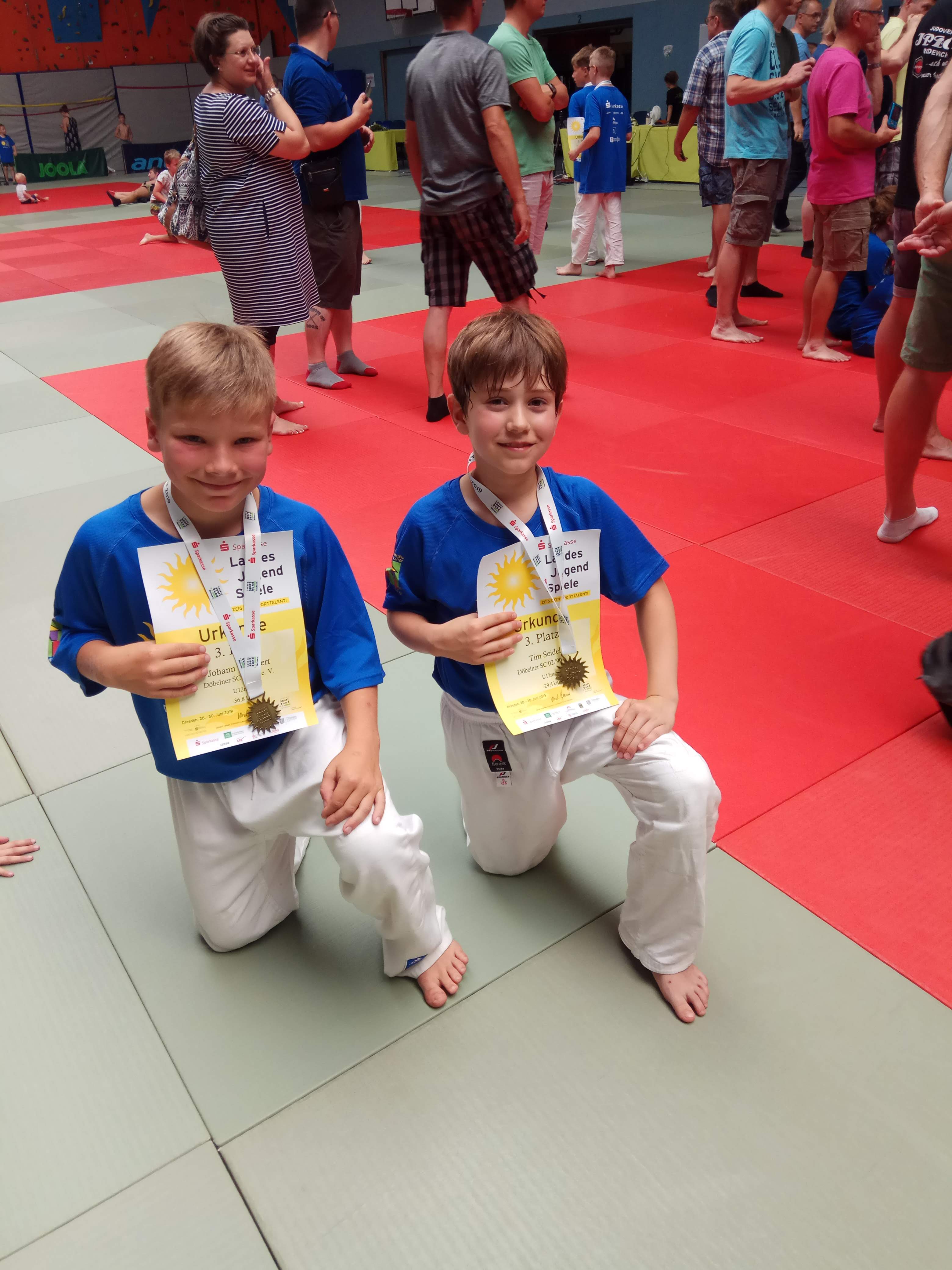 Mit jeweils zwei souveränen Siegen und einer Halbfinalniederlage beendeten Amelie Schöne (-33,5 kg U12) und David Kutsch (-37 kg U14) einen ordentlichen Wettkampf auf dem Bronzerang.