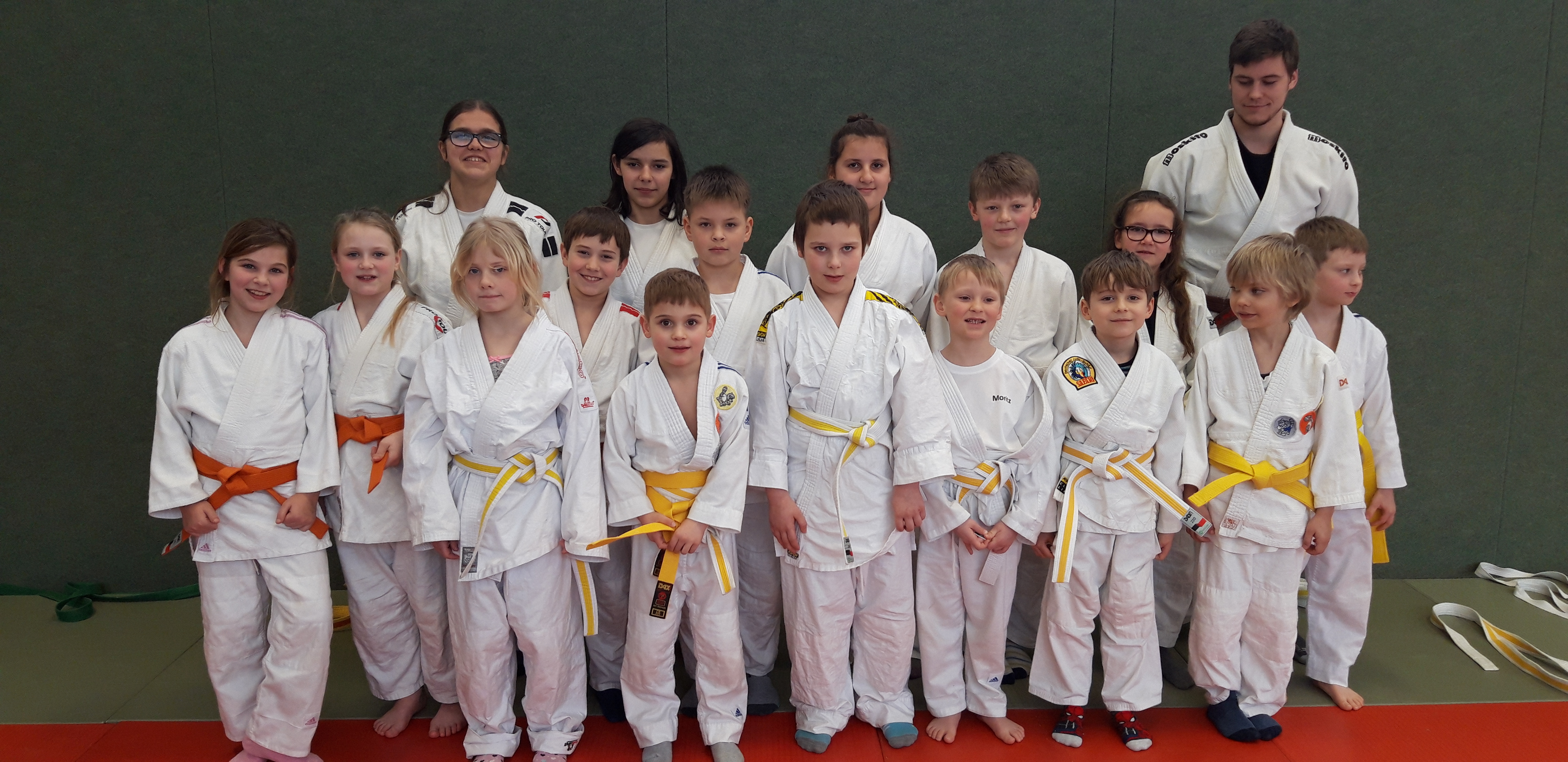 Die meisten Kinder schlafen sich so richtig aus, in den Ferien. Nicht so, 25 Judoka des Döbelner SC, die sich ab 8:30 Uhr in der Turnhalle der Grundschule Ostrau trafen. Sie trainierten täglich bis zu vier Stunden um sich für die nächst höherer Gürtelstufe vorzubereiten. Für Edgar Thiele, Tristan Moche, Moritz Schlafge und Emil Beier war es die erste Prüfung für den weiß – gelben Gürtel. In den verschieden Aufgabenbereichen zeigte sie, wie man richtig fällt, wie man jemanden aus dem Gleichgewicht bringt um ihn zu werfen, dabei richtig sichert, damit sein Partner sich nicht verletzt. Jeder Griff muss sitzen im Bodenprogramm als auch im Stand und wurde unzählige Male wiederholt. Sarah Lorenz hingegen schon ein alter Haudegen. Sie bereitete sich mit ihrer Schwester Anna auf den 2. Kyu – Grad vor, den blaue Gürtel. Während Anna ihr Prüfung im Dezember des vergangen Jahres bestand, wussten beide was auf sie zukommt. Wenn alle nach Hause gingen, durften sie noch eine Stunde hintenan hängen, um für die KATA zu üben. Eine besondere Form der Demonstration von festgelegten Techniken aus der Gruppe der Fußwürfe. Für alle hatte sich die Mühe in dieser Woche gelohnt. Aufregung und Lampenfieber gab´s vor jeder Prüfung, wenn man dran war, was man eben noch wusste, war bei einigen manchmal auf einmal weg. Nur gut, dass man einen Uke hatte, der dann einen aus der Patche half und irgendetwas flüsterte, was man einfach mal kurz vergessen hatte. Dank auch den Partnern (Uke) die in dieser Zeit die Judowerte, wie Freundschaft, Hilfsbereitschaft, Ernsthaftigkeit und Wertschätzung, um nur einige zu nennen, gelebt haben wie Jasmin Witschel, Vanessa Liske, Linda Munzig und Anna Lorenz.