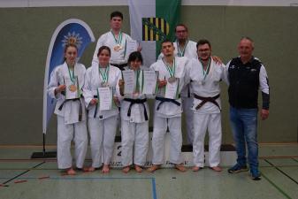 Im Anschluss an die Einzelkämpfe fand die Mixed Mannschaftsmeisterschaft statt. Wir stellten ein Team mit Anna, Lucy, Matilde, David, Toni Münch und Julius. Das zweute Team bildete der PSC Bautzen gemeinsam mit dem TSV Lichtenberg, dem TSV Reichenberg Boxdorf und dem Judoverein Coswig.