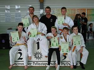 Dritter Plätze gingen an Georg Thiele -29kg, Melina Riedel -33kg und an Dominik Biendara -40kg der mit 13 Kämpfern der am stärksten besetzten Gewichtsklasse nur einen seiner vier Kämpfe verlor.