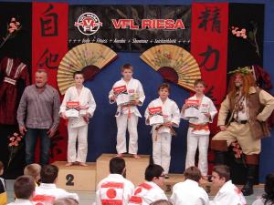 Vier Judoka schafften den Sprung auf das Siegerpodest. In der AK U13 erkämpften dritte Plätze Sarah Lorenz -48kg und Martin Laub -60kg. Dominik Biendara -42kg musste sich nur im Finale geschlagen geben und belegte einen guten 2.Platz. Lukas Töpfer -38kg konnte zwei seiner vier Kämpfe gewinnen und belegte Platz sieben. In der Altersklasse U15 konnte sich Robert Münch -66kg über den 3.Platz freuen. Alle Gewichtklassen waren gut besetzt so dass jeder drei bis vier Kämpfe bestreiten musste.