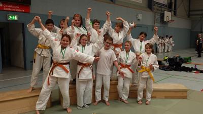 Am Sonnabend fanden in Dresden die Landesmannschaftsmeisterschaften der Altersklasse U13 statt. Der letzte Jahrgang der U11 konnte dabei mit an den Start gehen. Mit einer Mädchen- und einer Jungenmannschaft gingen die DSC-Judoka auf die Tatami. Ausgehend von der Stärke an Mitgliedern in dieser Altersklasse hätten die Döbelner sogar mit zwei Jungenmannschaften bei diesen Mannschaftsmeisterschaften antreten können. Emily Wehle musste zwei Mal über die Waage gehen, erst dann konnte jede Gewichtsklasse besetzt werden. Bei den Jungen klappte das nicht so. Die Gewichtklasse bis 42 kg konnte nicht besetzt werden. Drei bei den Mädchen und zehn Mannschaften bei den Jungen kämpften um den Titel. Die Mädchen mussten als erste gegen den Ausrichter SV Motor Mickten antreten. Mit einer überzeugenden Leistung fegten sie ihren Gegner von der Matte: 500). Noch ein besseres Ergebnis gelang den Mädchen vom Ippon Rodewisch, die den Gastgeber ebenfalls mit 500) Punkten besiegten. Im Finale standen sich der DSC und Ippon Rodewisch gegenüber. Eine harte Nuss, die es zu knacken galt. Emily Wehle -33kg unterlag gegen Greger mit Punkt. Helene Dettmer -36kg holt mit Punkt gegen Dolle auf. Eins zu Eins. Emely Frank -40kg gibt den Kampf mit Ippon ab. Anna Lorenz -44kg gelingt es, den Waza-ari-Vorsprung über die Zeit zu retten. Ausgleich 2:2. Im letzten Kampf fiel die Entscheidung. Melanie Riedel +44kg war diese schwere Aufgabe zugedacht. Gegen Friedrich Sharon kann sie sich durchsetzen und gewinnt verdient mit Ippon. Am Mattenrand bricht Jubel aus, wir sind Meister. Zur Aufstellung der Mädchenmannschaft gehörte auch Franziska Staude +44kg, die sich am Freitag noch leicht verletzt hatte, aber um jeden Preis ihre Mannschaftskameradinnen nicht im Stich lassen wollte und einsatzbereit war. Im Wechsel mit den Mädchen gingen auch unsere Jungen auf die Tatami. Mann musste alles geben, denn die Gewichtsklasse bis 42kg konnte nicht besetzt werden. Auch hier traten die Jungs in ihrer ersten Begegnung gegen den Gastgeber an. Angestachelt vom Erfolg der Mädchen gewannen die Döbelner mit 3:2. Der erste Sieg war wichtig, damit kämpfen sie im nächsten Kampf um den Einzug ins Finale. Hier heißt der Gegner Chemnitzer PSV, Sieger gegen den TSV Reichenberg/Boxdorf. Den einzigen Sieg holt sich hier David Kutsch -34kg der seinen Gegner Saen Würker mit einem Muster-O-Goshi förmlich in die Matte drückt. Mit 4:1 geht diese Begegnung verloren. Auch im Kampf um Platz drei ist David gegen Georg Starke von TSV Reichenberg/ Boxdorf erfolgreich. Da es der erste Kampf um Platz drei ist, der gewonnen werden kann, keimt Hoffnung. Bald aber wird klar: Wir können nicht gewinnen, die anderen Zweikämpfe gehen verloren. So heißt es am Ende Platz fünf für David Kutsch-34kg, Fritz Simon Rädisch -38kg, Otto Adam -46kg und Maik Edward Laschet, der eine Gewichtsklasse höher +46kg kämpfte. Tolle Leistung, so der verantwortliche Trainer an diesem Tag. Sie haben alles gegeben. Das lässt hoffen auf Nachwuchs in der Männermannschaft und hoffen, irgendwann vielleicht sogar eine Frauenmannschaft zu haben.