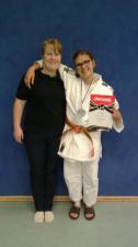Auch Sarah kämpfte zweimal. Den ersten Kampf gewann sie nach einem Waza-ari und einer, ebenfalls auf Waza-ari gehaltenen Kesa-gatame. Ihren zweiten Kampf verlor sie nach einem Ippon ihrer Gegnerin. Sarah kann somit zu den Mitteldeutschen Meisterschaften der U15 am 9. Juni nach Schmölln fahren.