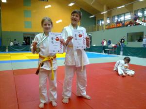 Am Samstag, den 24.03.2012 war im Heinsdorfergrund bei Reichenbach die Sachsenmeisterschaft in Judo. Am Start waren 170 Mädchen und Jungen aus 65 Vereinen und alle hatten nur ein Ziel, die Besten in der Altersklasse U12 zu sein. Mit dabei 2 Sportler vom Döbelner SC. Jette Brückner stand in der Gewichtsklasse bis 27 kg auf der Matte und musste sich mit kämpferisch starken Gegnerinnen auseinandersetzen. In ihren ersten Kämpfen dominierte Jette hervorragend und gewann souverän. Selbst gegen die spätere Sachsenmeisterin gewann sie vorzeitig mit Ippon (10 Unterpunkten). Doch je länger der Wettkamptag dauerte, umso schwieriger wurde es, sich noch voll zu konzentrieren. So schlichen sich in die letzten beiden Kämpfen kleine Aufmerksamkeitsfehler ein, was zu Folge hatte, dass beide Kämpfe verloren wurden. Am Ende reichte es aber doch noch zu einem schwer erkämpften 3. Platz. Ganz anders verlief der Wettkampf von Nils Lörtscher in der Gewichtsklasse bis 55 kg. Während er auf seinen ersten Kampf sehr lange warten musste, zeigte sich dann in diesem die Unerfahrenheit von Nils. Es war ja auch erst sein zweites Turnier, an dem er teilnahm. So ging auch der erste Kampf verloren. Doch Nils lernte sehr schnell und so kämpfte er sich über die Hoffnungsrunde in den Endausscheid um Platz Drei. Diesen gewann er verdient. Mit zwei Kämpfern angereist und mit zwei Medaillen nach Hause gefahren, für die Judokas des Döbelner SC ein gelungener Tag, der Hoffnung auf mehr macht.
