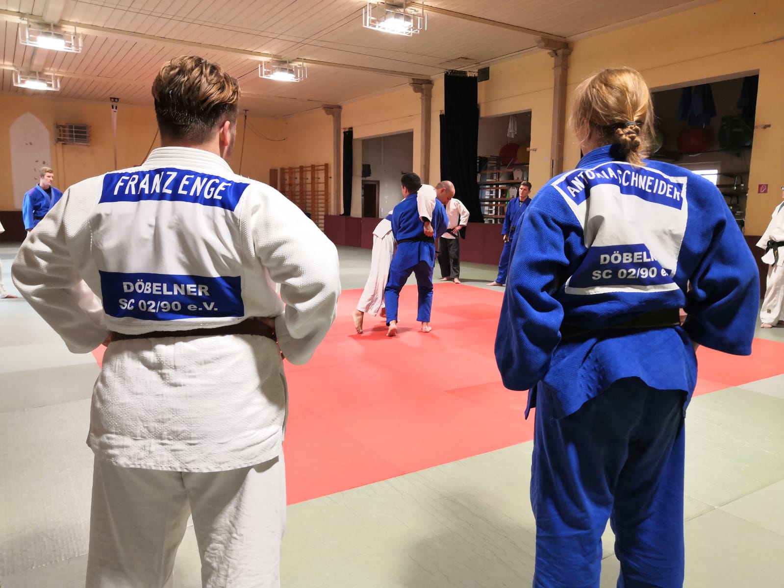 4 Döbelner (Franz Enge, Antonia Schneider, Jakob Ernst, Robert Becke) hatten den Weg nach Leipzig auf sich genommen. Nach der gemeinsamen Erwärmung wurde der Technikteil durchgeführt. Dieser beinhaltete ein spezielles Herausarbeiten aus einer Beinklammer im Ne-Waza und zwei Kaeshi-Waza (Kontertechnik) im Stand. Das Hauptaugenmerk galt dem Randori; da gab es neben den vielen Runden verschiedene Aufgaben zu bewältigen. Erschöpft und mit vielen neuen Impressionen konnten in der Grillecke noch gemeinsam Getränke und Grillgut genossen werden.