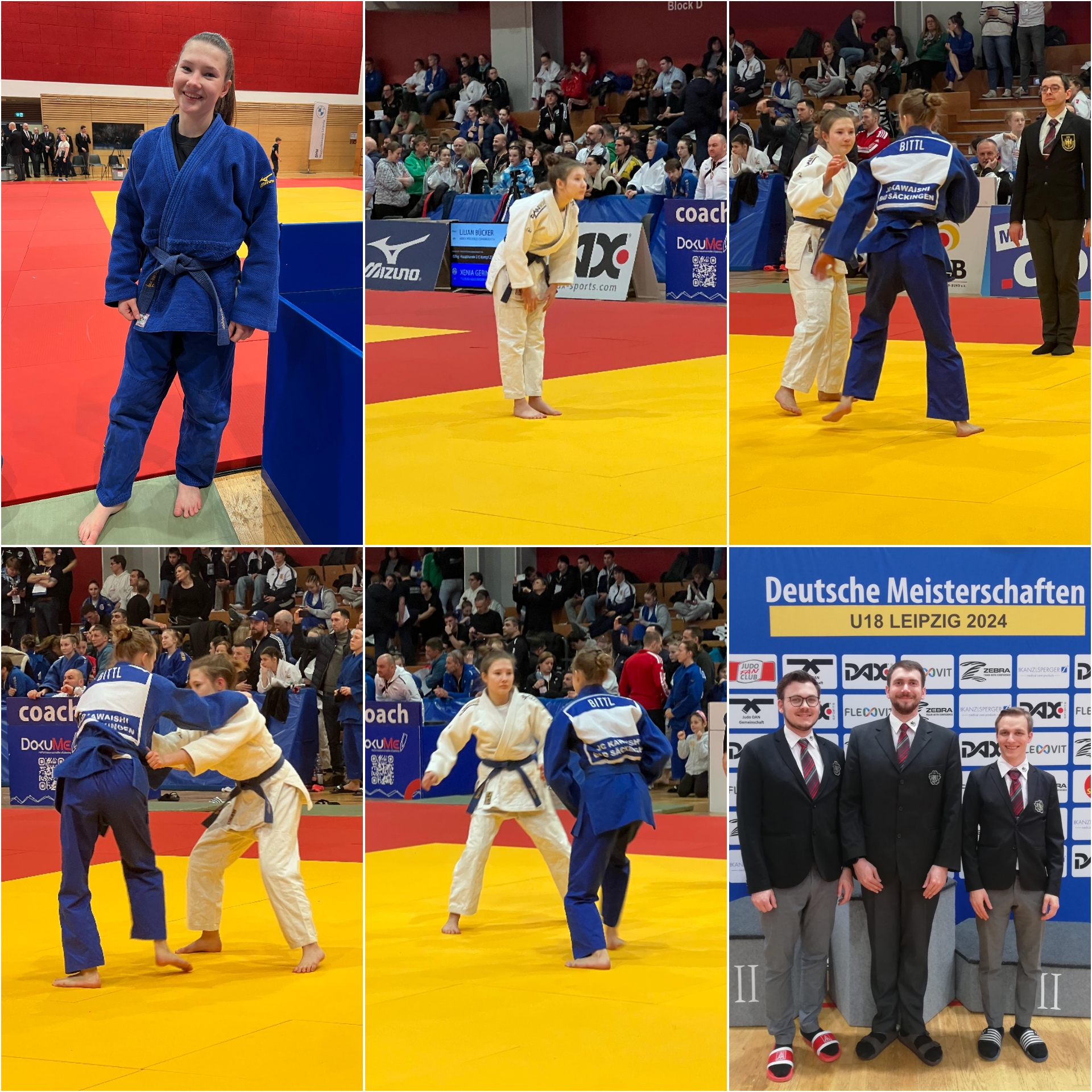 Nachdem die Meisterschaften mit der deutschen Nationalhymne feierlich eröffnet waren, dauerte es auch nicht mehr lange, bis Josephin auf die Matte durfte. In ihrer Gewichtsklasse -48 kg wollten insgesamt 24 junge Frauen um den Titel kämpfen. Im ersten Kampf stand unsere Döbelnerin Jana Prituleac aus Gießen gegenüber. Nachdem Josephin kurz nach Kampfbeginn einen Waza-Ari abgab, geriet sie anschließend in einen Haltegriff, dem sie nicht mehr entkam. Im zweiten Kampf wollte Josephin es besser machen und zeigte das gegen Belana Bittl aus Baden auch von Anfang an. Die beiden schenkten sich nichts und konnten gute Wurfansätze für sich verbuchen. Nach einem sehr guten Ko-Soto-Gake von Josephin, der nur knapp nicht zur Wertung für sie reichte, nutzte die Badener Gegnerin eine Unachtsamkeit im Boden und nahm unsere Sportlerin in die Festhalte. Auch aus dieser war leider kein Entkommen mehr, wodurch der Wettkampf für Josephin beendet war.