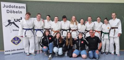 Im letzten Kampf der diesjährigen Verbandsliga-Saison wartete nochmal ein großer Brocken: die Frauen vom PSV Leipzig, Vizemeisterinnen des Vorjahres und Tabellenführende nach dem ersten Kampftag. Es musste also noch einmal alles in die Waagschale geworfen werden. Ins Rennen gingen diesmal Josephin Teuchert (-52 kg), Mariella (-57 kg A), Lucy (-57 kg B), Charlott Schimmel (-63 kg A), Anna (-63 kg B), Jolina (-70 kg) und Matilde (+70 kg). Nachdem Josephin gegen eine aktuelle Bundesliga-Kämpferin vom JCL den Kürzeren zog, bewies Mariella Nervenstärke. Auch sie stand einer ehemaligen Bundesliga-Kämpferin gegenüber, nutzte eine Kontersituation und verteidigte ihre Waza-Ari-Führung bis zum Ende des Kampfes. Und im nächsten Kampf? Na klar, die nächste ehemalige Bundesliga-Kämpferin auf Seiten der Leipzigerinnen. Lucy bot ihr über die volle Kampfzeit die Stirn, setzte immer wieder Akzente sowohl im Boden als auch im Stand. Erst im Golden Score fiel die Entscheidung für die Döbelnerin und damit die 2:1-Führung. War da etwa doch ein Sieg drin gegen die bis dahin ungeschlagenen Leipzigerinnen? Aus den nächsten drei Kämpfen ging nur unsere sichere Bank Anna Lorenz als Siegerin hervor, sodass es vor dem letzten Duell 3:3 stand. Die Sensation lag in der Luft und wieder einmal ruhte die Entscheidung auf der letzten Sportlerin, diesmal Matilde. Gegen die letztjährige Drittplatzierte der Deutschen Polizeimeisterschaften fand sie jedoch nicht in den Kampf, wurde schnell geworfen und die Niederlage war besiegelt.